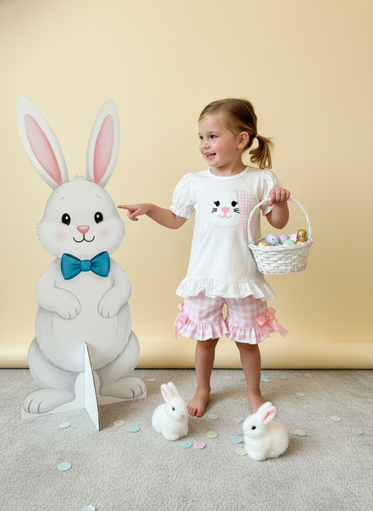 Pink gingham bunny ruffle short set