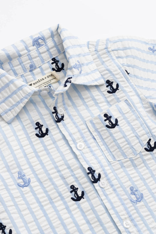 Kids Short Sleeve Oxford Shirt_Nautical Anchors