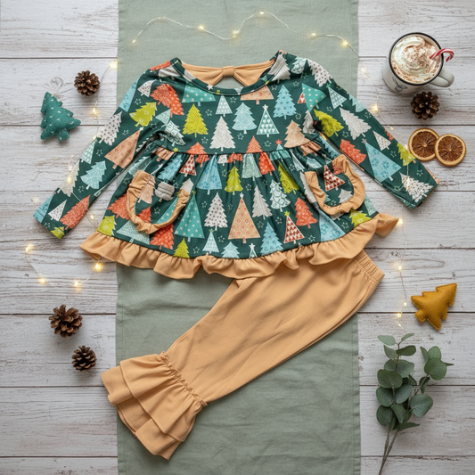 Christmas tree ruffled pant set