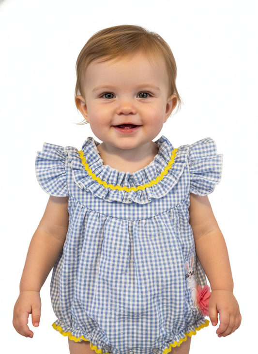 Blue gingham bubble romper