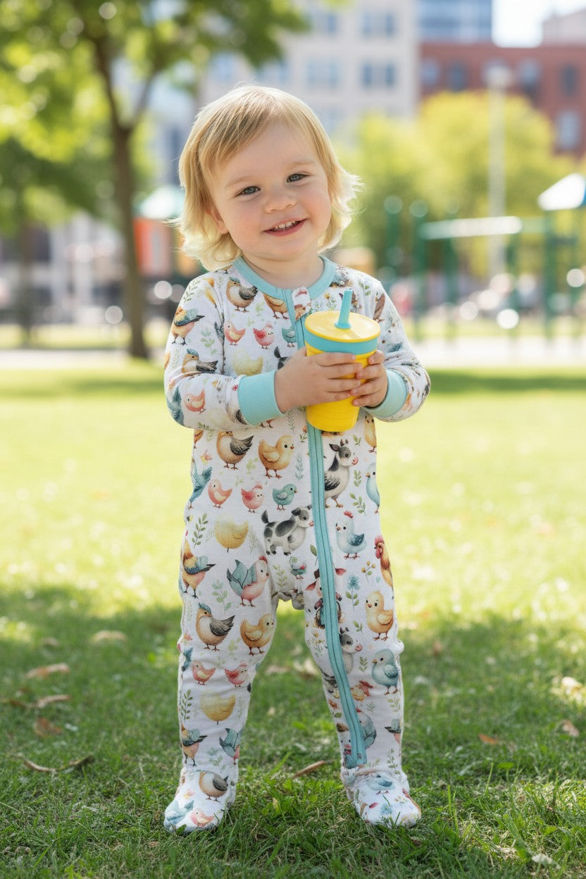 The Baby Farm Animals Bamboo Zippie is crafted from buttery soft bamboo fabric that offers exceptional stretch and gentle comfort ideal for your baby’s delicate skin. Its breathable and flexible material ensures ease of movement, making it perfect for active little ones. This thoughtfully designed zippie combines natural softness with durability, providing cozy wear throughout the day and night.
