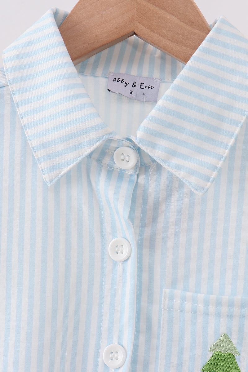 Celebrate the festive season with this playful Christmas tree embroidery button down shirt. Featuring charming embroidered trees, it brings holiday cheer to your wardrobe while keeping you stylish and comfortable. Perfect for cozy gatherings or lively parties, this shirt adds a fun, spirited touch to your seasonal outfits.