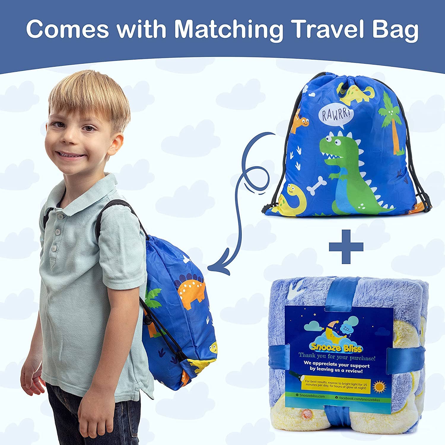 😴 SAY GOODBYE TO BEDTIME ANXIETY - With friendly dinos glowing warmly through the night, kiddos will feel safe and secure drifting off to sleep wrapped in this soothing security blanket. Our snuggly glow in the dark blankets for boys and girls make bedtime a time to look forward to!