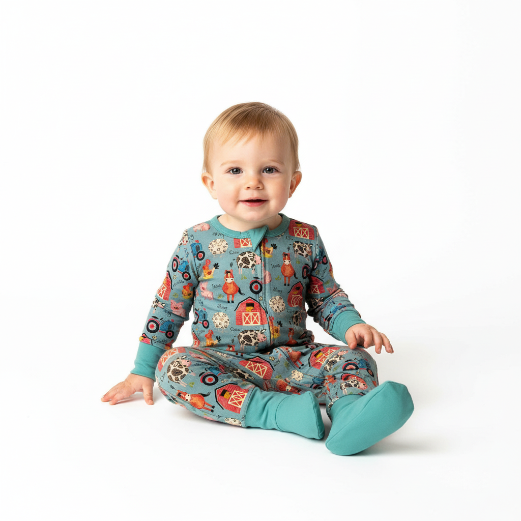Perfect for bedtime snuggles, morning cuddles, or cozy days at home, these Farm Friends Footed Pajamas are a must-have for every little one’s wardrobe.